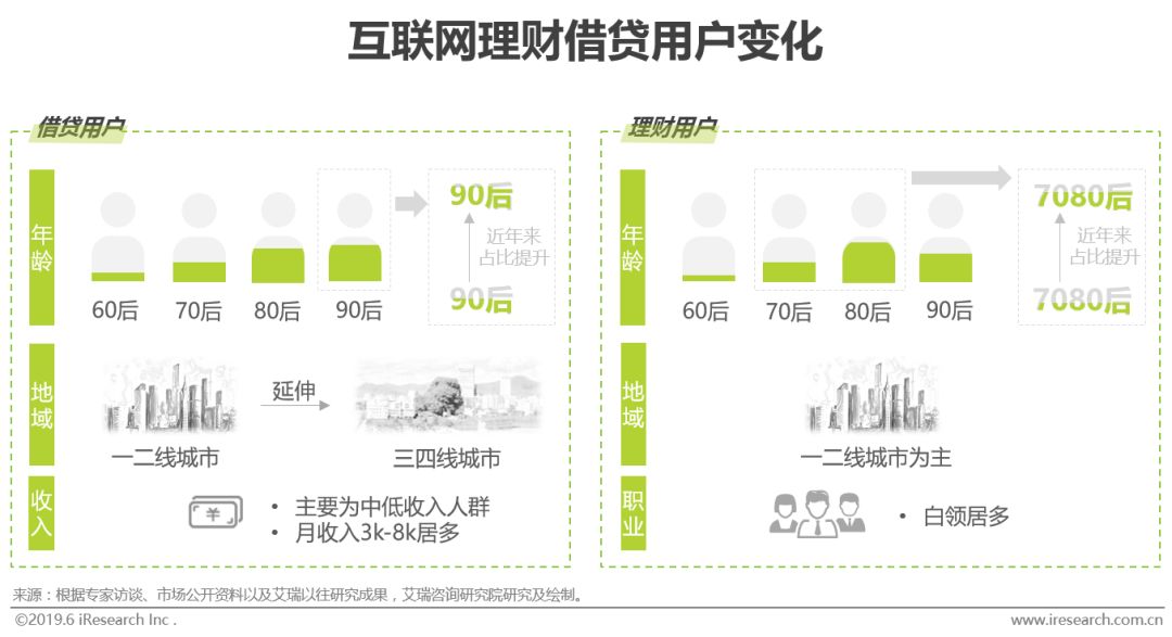 用户画像:借贷用户趋于年轻化、城市下沉,理财用户趋于大龄化;相较品牌活动,效果类广告对用户属性变化更为敏感 互联网金融发展至今,用户特征也在发生着变化。借贷用户和理财用户均以80后90后为主,然而借贷用户中90后比重逐渐增多,借贷群体日趋年轻化,理财用户中70后80后的比重逐渐增多,多年财富的积累使得这部分中年理财群体成为优质的互联网理财客群。从地域来看,借贷人群逐渐向三四线城市渗透,理财人群依旧以一二线城市为主。效果类广告对用户属性的变化更为敏感,用户属性的变化一定程度上影响着平台效果类广告的投放策略,然而与品牌的联动性较弱,有时不足以影响品牌活动的择选。