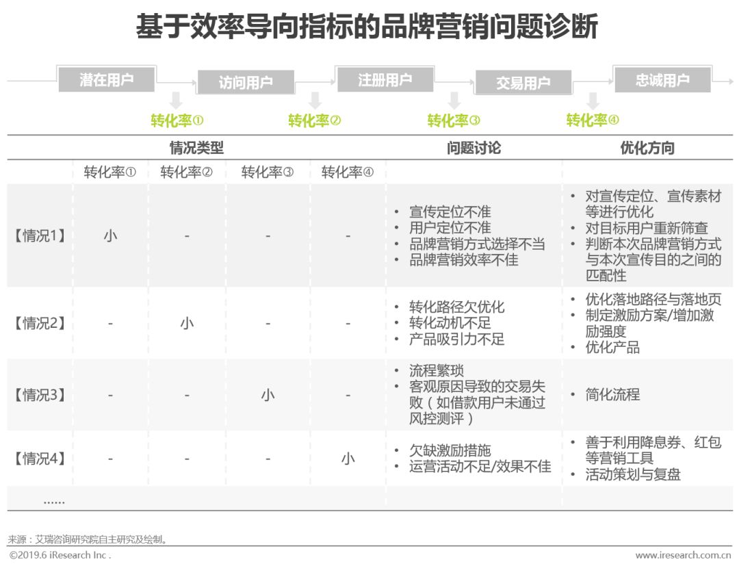 基于效率导向指标,关注各个环节的转化率并加以组合,可对出现问题的环节进行初步判断,当锁定问题所在环节后可进一步对问题原因进行可能性排查,从而明确优化方向。