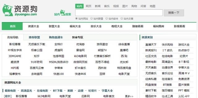 资源狗本身就是一个大大的资源库,但是它最大的作用不是用来搜资源,而是用来找能找到资源的网站(有点绕口)。在这里你能看到许多大名鼎鼎的资源网站,像是电影天堂、迅影网、BT之家……货真价实的一个顶百个资源网站。